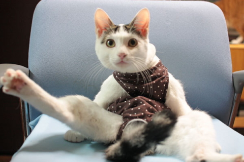 雄猫の去勢後、術後の傷は洋服ではカバーできません