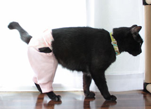 過剰グルーミングの舐め壊しや、下肢の傷をカバーするためのズボンです