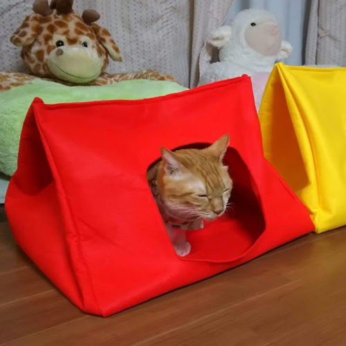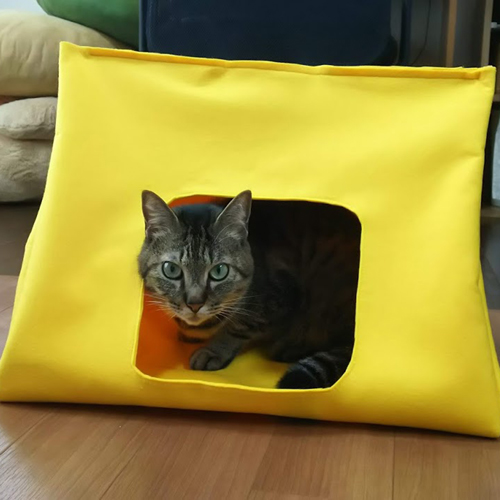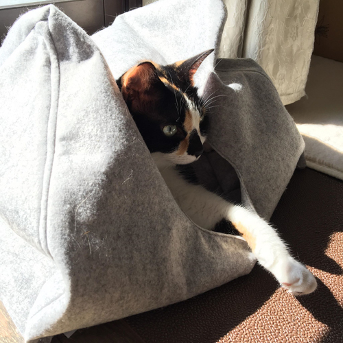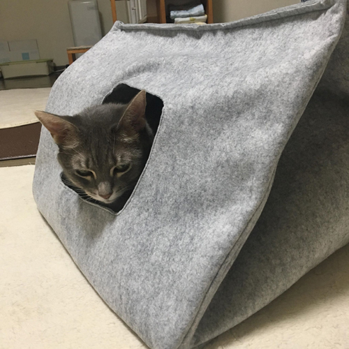 洗えるフエルトを糸で縫い合わせただけのシンプルな猫用テント
